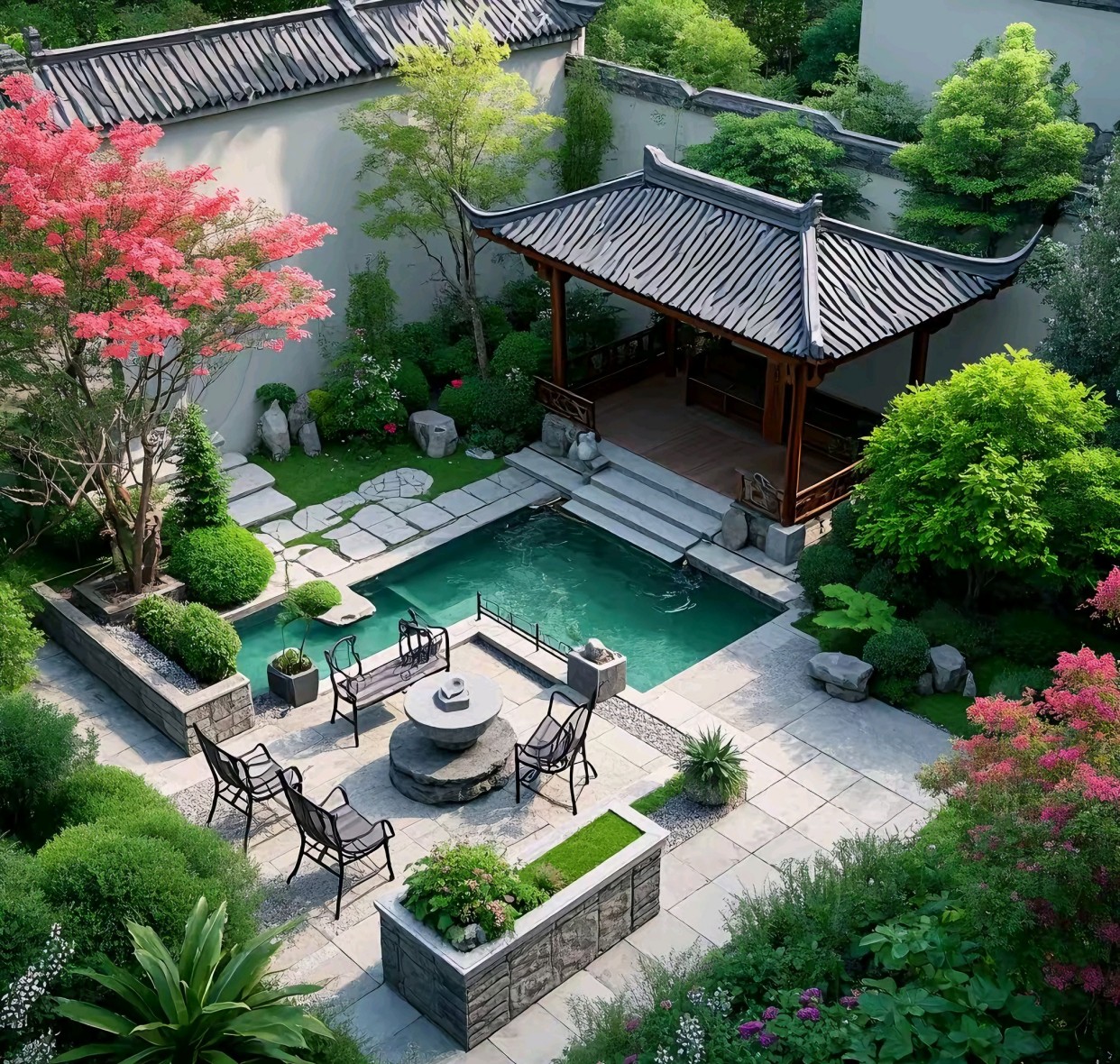引言:从单纯的空间叙事到空间能量叙事 在三十余年的设计实践中,逐渐领悟到一个超越形式与功能的真理:卓越的宅院景观设计,本质上是构建一个能与天地能量共振的生命健康系统。在现代建筑与景观设计中,我们不仅仅是几何体的简单堆砌者。每一块砖石,每一棵植株,都在诉说着人与环境共生共荣的故事。吴加东先生的设计哲学核心之一便是“天人合一”,他深信自然的力量是无穷的,且是智慧的源泉,在每一个项目中都追求场地、植物与人的和谐共鸣。 风水学说,作为中国传统文化中一种古老的宇宙观和环境适应智慧,其本质并非迷信,而是对自然规律(如气候、温度、降水、海拔、地形、光照、空气、风向风速、土壤、水文、周边环境等)及人类行为模式(如功能需求、行为动线、视线、视觉焦点、人体工程学等)的深刻洞察。它关注的是如何通过合理规划和空间布局来营造利于身心健康、事业兴旺、财运亨通的能量磁场。因此,“风水”是一门关于能量流动和视觉平衡的艺术与科学。他始终将传统“风水园林”作为设计创作的灵感来源,但更注重其在现代设计中的实际应用与创新呈现。 “树有阴阳,宅分八卦”,这是对园林元素与建筑关系的精辟总结;“天光下临地,财帛积如山”,这是对美好环境与财富象征的深刻理解。 哲学对风水的现代诠释:“气”的科学与艺术 “气乘风则散,界水则止。古人聚之使不散,行之使有止,故谓之风水。”这句流传千年的口诀,揭示了风水的核心本质。在我的理解中,“气”是流动的能量场,是存在于天地间的生命脉动。现代科学或许可以将其理解为磁场、离子流或量子场,但在设计实践中,更愿意将其视为一种可被感知的环境影响力和“身临其境”的感染力! 1.1 “气”的四种形态在宅院中的体现 生气:旺盛、活跃的生命能量。如阳光充足的草坪、蓬勃生长的花丛。 衰气:停滞、衰败的能量。如长期阴暗潮湿的角落、枯萎的植物。 煞气:尖锐、冲突的能量。如直路冲门、屋角相对形成的能量冲击。 旺气:和谐、积聚的生气。如明堂开阔、背山面水的理想格局。 庭院中讲究风水营造的根本作用,在于“转化衰气、化解煞气、引动生气、积聚旺气”。一棵枝繁叶茂的树木,其本身就是一个强大的能量转换器,通过光合作用转化光能,通过蒸腾作用调节微气候,更通过自身的生命场影响周围环境。风水学认为,“气”是万物的本源,庭院布局要能“藏风聚气”。合理规划庭院的空间层次,通过营造高低起伏的地形,形成蜿蜒曲折的路径,打造不同高度的硬质铺装、水景、植物、构筑物、小品等,引导“气”的缓慢流动。例如,利用矮墙、花架和植物群落打造一条曲折的步道,让人在行走过程中感受到空间的变化,同时使“气”在庭院中充分停留。 1.2 现代宅院中的“藏风聚气”新解 传统风水追求“藏风聚气”,在现代都市环境中,我将其重新诠释为: 藏风:并非阻挡一切气流,而是减缓风速、梳理风流。通过植物的层层配置,将急风化为柔风,将直风转为曲风。 聚气:创造能量的“滞留点”与“回旋处”。通过植物的围合、地形的变化,让气能够停留、成为滋养生命的健康场所。 2. 植物的阴阳平衡:于方寸间,演天地之道 风水并非僵化的规则,而是一种动态平衡的哲学。其核心思想,根植于古老的“阴阳”智慧。宇宙万物,莫不有阴阳;宅院中的一草一木,亦是如此。理解并运用植物的阴阳平衡,便是掌握了激活宅院生命力的密钥。 2.1 阴阳,是解释万物对立统一、相互转化的根本法则。 阳:代表光明、温暖、向上、运动、刚健、外向。 阴:代表黑暗、寒冷、向下、静止、柔顺、内敛。 一个理想的风水宅院,绝非纯阳或纯阴,而是追求《易经》中所说的“一阴一阳之谓道”,让阴阳二气在空间中交汇、融合、循环,达到“阴平阳秘,精神乃治”的和谐状态。植物,作为最具生命力的调节器,在此间扮演着无可替代的角色。植物的阴阳平衡,归根结底,是让我们师法自然。观察自然山林,必有高大乔木(阳)与林下灌木草丛(阴)的和谐共生,有向阳坡与背阴面的交替变化。设计师就是将这天地间的宏大平衡,微缩于宅院方寸之间。 庭院中要兼顾阴阳元素的平衡。阳光充足、明亮的区域为阳,阴凉、静谧的区域为阴。可以在向阳处种植色彩鲜艳的花卉,如牡丹、月季等彩叶赏花植物等补阳;在背阴处种植耐阴植物,如蕨类、绿萝、万年青等滋阴。让阳气的升发与阴气的涵养在此间流畅循环,最终让居住者感受“春天般的生机、夏天般的热情、秋天般的宁静、冬天般的蓄力”,融于一体,这便是庭院设计的最高境界--“阴阳调和,四时吉庆。” 2.2 植物的阴阳,并非绝对,而是通过其形态、习性、色彩等诸多特质相对呈现的 2.2.1 属阳的植物特质 形态向上:主干挺拔、枝干向上伸展,如松、竹、水杉。它们具有升发、昂扬的能量场。 喜阳习性:天生需要充足日照才能繁茂生长,如石榴、紫薇、月季、向日葵。它们自身就是“阳气”的吸纳与转化器。 叶片尖硬:叶片呈针形、尖角形,或质地坚硬,如丝兰、剑麻、某些罗汉松。其气场具有扩张性和保护性。 花色暖艳:开花以红色、橙色、黄色等暖色调为主,如红枫、石榴花、炮仗花。色彩心理学上,这些颜色能激发活力,属阳。 生长迅速:生命力旺盛,生长速度快的植物,通常阳气更足。 设计口诀:“阳木参天,气冲