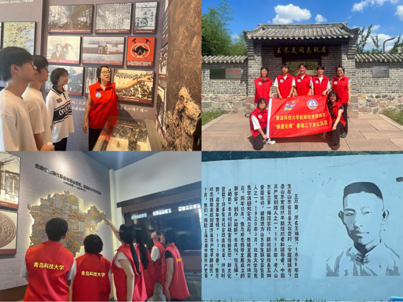 二、探寻地标,筑牢信仰根基 带着从老兵身上汲取的精神力量,实践团成员来到王尽美同志故居踏入故居。在讲解员的引导下,成员们通过一件件文物、一幅幅图片、一段段史料,详细了解了王尽美同志为中国革命事业奋斗的一生。从参与创建山东党组织,到投身工农运动,王尽美同志坚定的理想信念和无私的奉献精神,让成员们深受触动。在“党的创立和大革命时期山东党组织分布” 地图前,成员们进一步明晰了红色火种在齐鲁大地的传播历程,更加坚定了传承红色基因、担当时代使命的信念。