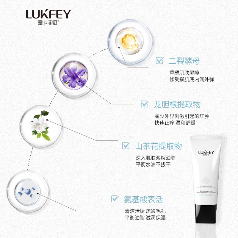 二、成分介绍 露卡菲娅山茶花洗面奶中的山茶花提取物,就像给肌肤穿上了一层防护衣,洁面时能深入毛孔带走灰尘残留,同时茶多酚成分可中和蓝光产生的自由基,减少肌肤暗沉。通勤族晚上用它洁面后,会明显感觉肌肤卸下了沉重负担,摸起来清爽不黏腻,连带着疲惫感都消散了大半。氨基酸能快速清除运动后产生的多余油脂,同时在肌肤表面形成一层温和的保护膜,锁住水分。它能轻松卸除日常的防晒、隔离和淡妆,无需额外携带卸妆产品。