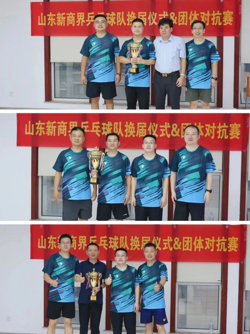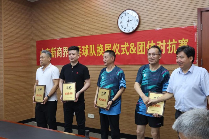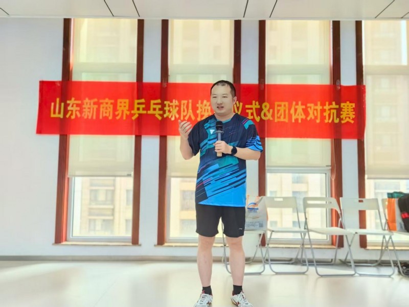 9月13日,山东新商界乒乓球队换届仪式暨团体对抗赛在北京银行济南分行成功举办。本次活动不仅顺利完成协会领导层的新老交替,更通过以球会友、资源对接、品牌赋能等多维度内容,展现出乒乓球俱乐部作为“企业家生态圈”重要平台的活力与凝聚力。 同学会会长曾伟、监事会主席李涛、秘书长田宝聚、校友中心主任陈雪,首届乒乓球队会长李万里、秘书长栾霞,新任会长赵文忠、总指导孙春浩、秘书长张健,北京银行济南分行乒协主席黄永生,中国中小企业协会山东办事处副会长、德正堂医疗集团执行董事卢淼等嘉宾,以及协会会员共聚一堂,见证仪式、同场竞技、共话未来。 换届仪式在庄严而热烈的氛围中拉开帷幕。同学会会长曾伟为活动致辞,充分肯定乒乓球队以往成绩,并对未来发展提出殷切期望。换届仪式在庄严而热烈的氛围中拉开帷幕。同学会会长曾伟为活动致辞,充分肯定乒乓球队以往成绩,并对未来发展提出殷切期望。首届秘书长栾霞主持整场仪式,首届会长李万里回顾协会发展历程,新任会长赵文忠则发表就职感言,表示将传承乒乓精神,搭建更广阔交流平台。