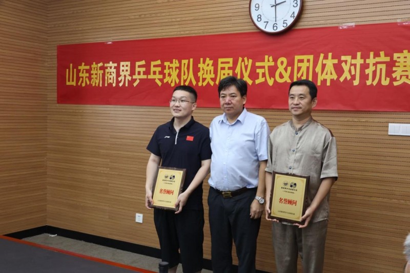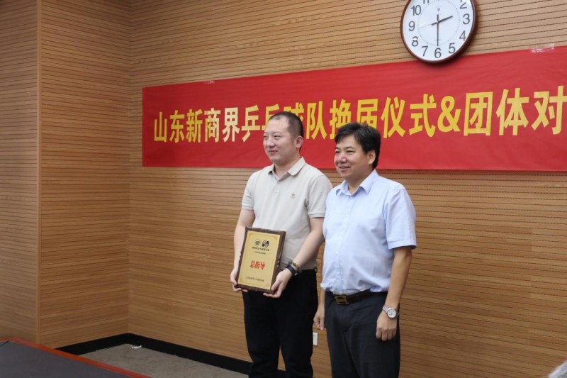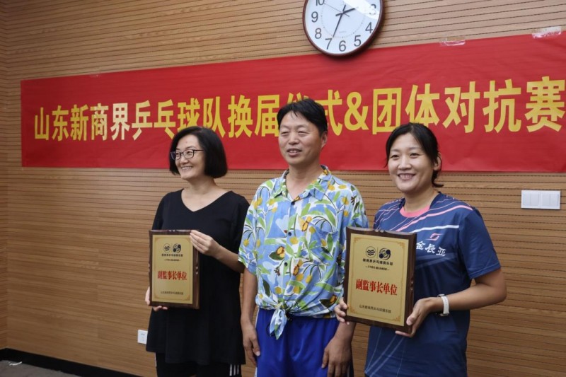 监事长周家魁为副监事长栾霞、官如镜授牌 换届仪式的完成既是乒乓球队的新老交替,也是搭建更广阔以球会友、交流互动平台的开始。未来,山东新商界乒乓球队将持续开展更多精彩活动,为新商界广大乒乓爱好者及校友群体注入更多活力!