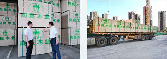 生意的炉火愈燃愈旺,却也熔铸着更宏阔的梦想。2008年,积累沉淀后的刘向良,在惠城横沥矮坡马岭村——那飘着梅菜清香的故土,毅然叩响了制造业之门:“向良木业制品厂”破土而出。从板材贸易跃入胶合板生产,这是一次全方位的蜕变。他一面筹措资金,广纳贤才,严格把控原料关口,筑牢质量的根基;一面扎进专业书海钻研,汲取行业养分,珍视每一条客户的反馈,以此淬炼工艺。这份担当,在后来三年的特殊时期尤显本色:为了保障数百员工的饭碗,在筑牢防疫安全网的前提下,向良木业机器的轰鸣声,始终不曾停歇。 变革维新立潮头 2018年,寒流突至,环保政策接连收紧,广东省严苛的排放标准,仅达标所需的环保设备投入就超过200万元;原材料价格一路高扬,而建筑模板的销售价格却在激烈的市场竞争中节节下滑,利润空间被挤压得几乎归零。“环保”“成本”“利润”三重枷锁骤然收紧,企业经营如履薄冰。 面对凛冬,刘向良眼底不见怯意,唯有更深沉的思辨与更决绝的进击。坐以待毙?绝非他的选择。唯有变革,才有生机;唯有破局,方能重生。2019年,向良木业的转型蓝图清晰地展开:拓宽源头活水,将目光投向海外优质森林资源,缓解原料桎梏;精准对接下游终端需求,增设木方深加工线,提升产品的附加值;丰富产品羽翼,加大高端产品研发力度,向着产业链更高处攀登。 “敢闯,才有路。”刘向良笃信行动的力量。向良木业果断地引入新西兰等地纹理细腻、结疤少、板面平整的高品质面板,巧妙结合本土速生桉树加工成的坚韧芯板,优化了原料结构,奠定了高端产品的基石。然而,真正的蜕变,在于科技的跃迁。排版、过胶、预压、热压、整形、锯边……半自动流水线设备的引入,显著地提升了生产效率和精度(下一步推动设备智能化升级)。业务重心也随之蜕变:从单一建筑模板,转向高附加值矩阵——亮眼覆膜板、坚实塑面板、精巧包装板、典雅黄金板、优质家具板……羽翼渐丰。 为此,向良木业投入重金引进了新型热压设备,钻研桉树胶合板核心技术,组建起专业的研发团队,对胶水配方、压力参数、工艺流程反复进行了千百次的调试与优化,只为生产出承重更强、质量更稳的胶合板。同时,积极携手科研机构,研发新型环保胶水,其甲醛释放量远低于国家强制标准,精准捕捉市场对绿色家居日益强烈的渴求。