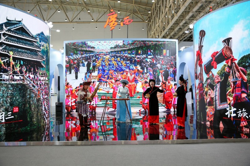▲广西“刘三姐”与湖北恩施“黄四姐”山歌对唱 线上推广 拓展八桂好物传播力 本次博览会上,由广西14地市43家文化机构、文创企业与文旅单位组成“联合方阵”,聚焦展示展销非遗衍生品、康养美食、文创潮物等众多创新产品,充分展示了广西文旅的综合强劲实力。广西馆以“活力夜广西”官方IP——“喵小桂”为亮点,设置“喵小桂”主题文创区,集中展示相关文创商品和广西夜生活地图,吸引现场大量观众互动消费,带走“广西记忆”。坭兴陶与六堡茶组成的“茶陶双绝”组合,在茶艺师娴熟的技艺下,向现场观众传递广西水土孕育出的独特匠心理念,感知广西民族文化的深厚底蕴。“桂品好物直播间”内上线的壮锦潮包、景区门票、酒店套餐等丰富的文旅产品,为线上观众提供便捷购买渠道。邀请武汉文旅达人直播云游逛馆,借助线上推广营销有效提升广西文旅品牌曝光与销售转化。