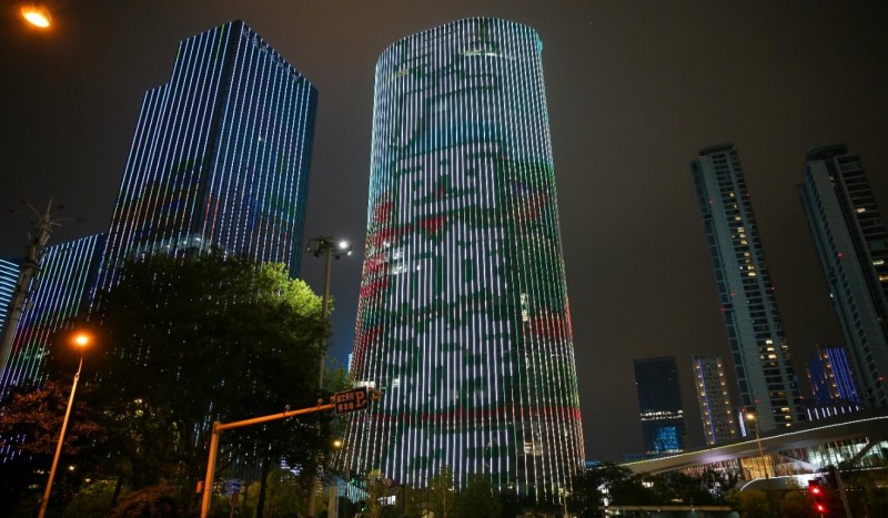 ▲“游活力夜广西,享广西旅游年”在武汉的灯光秀宣传