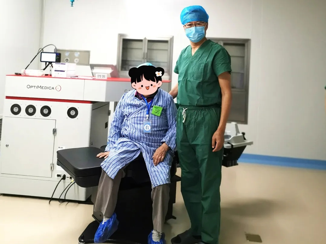 针对复杂的病情,经过专业的诊断后,我院王建华院长带领团队制定了详细的手术治疗方案,同时与患者及家属详细沟通,重新燃起了老人对光明的渴望,决心接受手术治疗,并给老人选择了损伤小、更精准、更安全的术式——飞秒激光辅助白内障手术。 手术过程是“智能机器人”自动化,更微创、更精准、更安全,躺下几分钟左右就完成手术了,甚至病人以为还没开始,就做好了。术后,老人的视力得到了极大的改善。