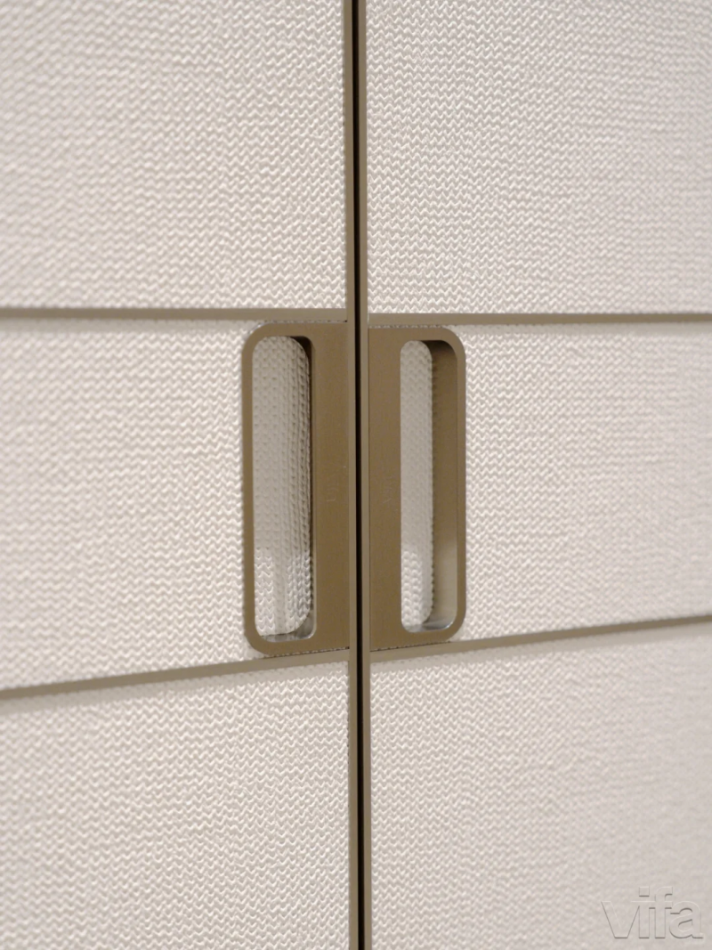 从视觉呈现来看,vifa威法德麻白衣柜打破了传统白衣柜的单一感。它并非直白的冷白或亮白,而是带着柔和温润的色调,远观时能自然融入各类装修风格,不突兀、不刺眼。更关键的是,柜体表面并非光滑的平面,而是复刻了麻布的细腻编织纹理——这种纹理并非刻意夸张的装饰,而是以细微的起伏感,让光线照射时形成柔和的漫反射,避免了光面板材易出现的反光刺眼问题,同时为白色赋予了层次与温度,使衣柜在视觉上更具高级质感。