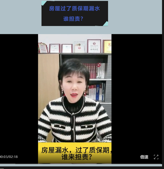 近日,山东省青岛市西海岸新区薛家岛街道法律顾问邓桂华律师,依托普法课堂短视频平台,针对居民较为关心的房屋漏水责任承担问题,结合实务经验,根据不同原因讲明责任划分规则,并给出具备可操作性的证据收集方法。