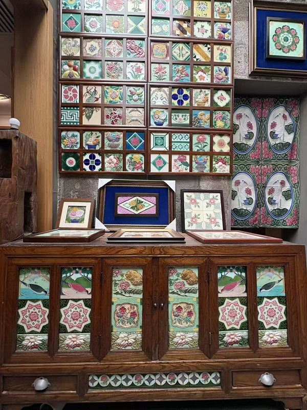 不仅如此,费广业还计划围绕老花砖开发系列文创产品,以及“特殊礼品”。比如,有的老花砖图案为三枝莲花,一枝比一枝高,寓意“连升三级”;有的老花砖上绘有喜鹊和梅花图案,寓意“喜上眉梢”;有的老花砖则画有石榴、寿桃、佛手三种瓜果,寓意多子多寿多福……将此类寓意美好的老花砖镶嵌入框,便是一份珍稀且足见用心的佳礼。