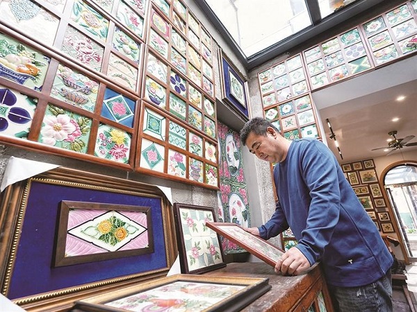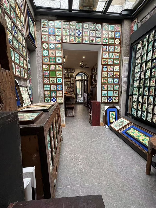 开创“花砖博物馆”打造文旅新亮点 如今,费广业位于西岗区南斗梧桐巷的二层小楼里摆满了各式各样的老花砖,以及镶嵌着老花砖的古旧家具,步入其中,顿有时光穿梭、记忆重现之感,让人颇多感慨。“日本、新加坡都有老花砖专业博物馆或专卖店,中国台湾和吉林等地,也有老花砖博物馆。我曾多次去那些专业博物馆和专卖店考察,收获了许多灵感。比如,新加坡的专卖店既出售收藏级老花砖,也有现代复刻的花砖,作为文创产品销售,非常受欢迎。”费广业希望在大连开创一家“花砖博物馆”,不仅能够填补这一独特收藏领域的空白,还能充分展示彩瓷文化,展现特定历史时期的生活文化风貌与审美偏好,让时光回到过去,让记忆温暖生活……