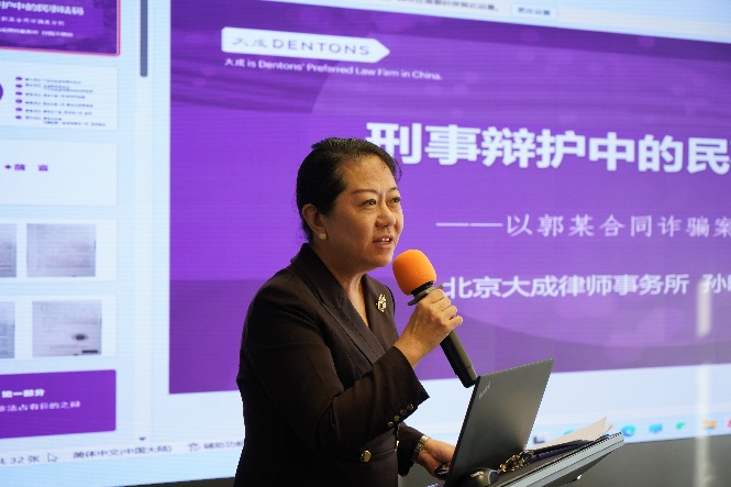 大成律师事务所高级合伙人、大成刑事专业委员会牵头人、北京总所刑事部(专业组)联合负责人娄秋琴律师进行压轴发言,从罪与非罪、此罪与彼罪和犯罪金额核减三个维度进行了发言,提出诈骗类犯罪包括合同诈骗罪在司法实践中具有很大的无罪辩护空间,可以从是否以非法占有为目的和是否实施了诈骗行为进行审查,对于此罪与彼罪的问题,可以考虑行为发生的领域审查起诉的罪名是否准确,并分享了自己办理的一起医保领域的诈骗案件,检察院起诉合同诈骗罪,进行改变定性为诈骗罪,最终宣告单位无罪。关于犯罪金额问题,娄律师提示大家关注诈骗类犯罪中案发前退还的金额和犯罪成本如何进行核减的问题,要通过理解司法解释的精神和检索相关入库案件积极说服司法机关。最后,娄律师呼吁在有些地方过度追求认罪认罚率的大背景下,辩护律师一定要坚持事实和法律,认真审查证据,避免冤假错案,做好有效辩护。